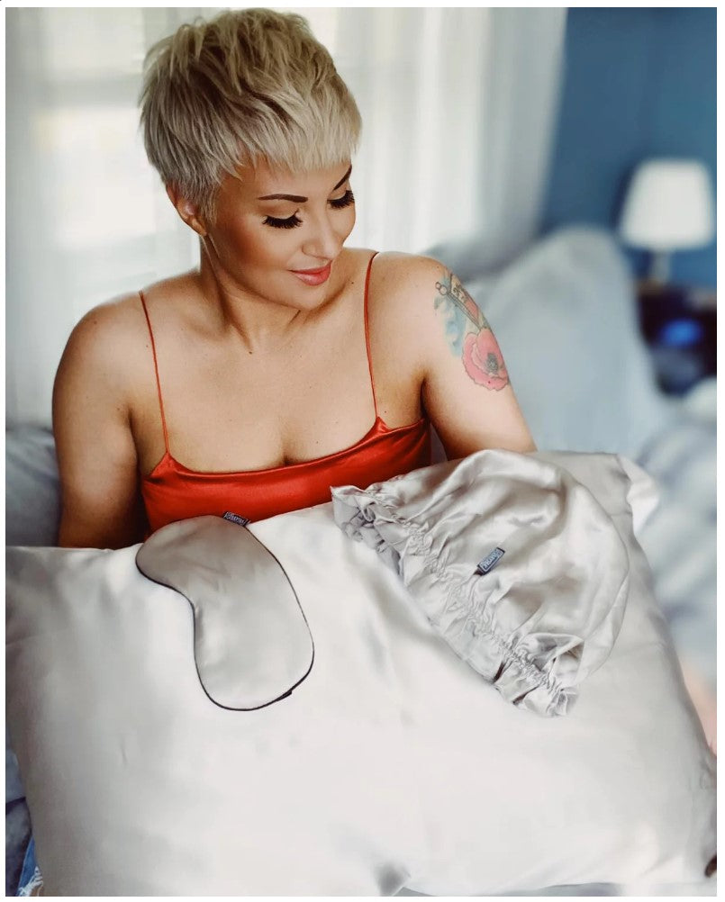 Silk infused with silver ions, promote radiant skin around the eyes through their antibacterial properties and the luxurious softness of silk.